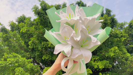 باقة زهور صنع يدويًا بالكروشيه مستوحاة من العصر القديم تمثل الرفاهية مع الياسمين والمانجوليا والزنبق