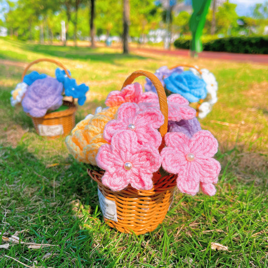 سلة خيزران يدوية الصنع مع تشكيلة زهور كروشيه - لمسة ديكور منزلي ريفي