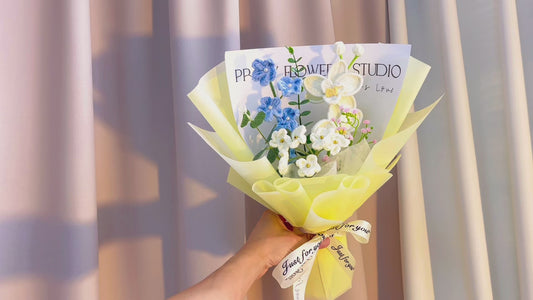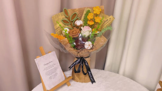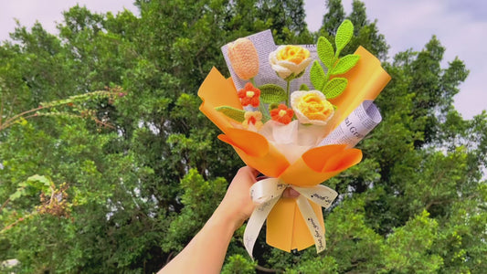 باقة زهور صنع يدويًا بالكروشيه مستوحاة من العصر القديم مزيج من الأناقة الخالدة - الورود، والنباتات لا تنسيني، ولحفل الزفاف والذكرى السنوية