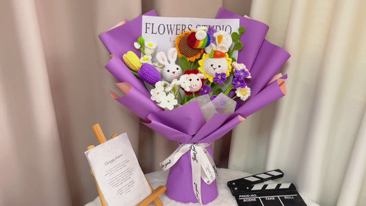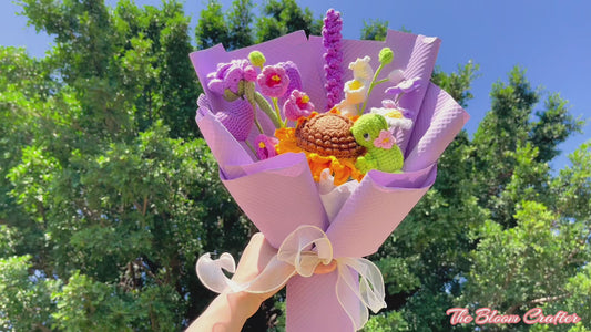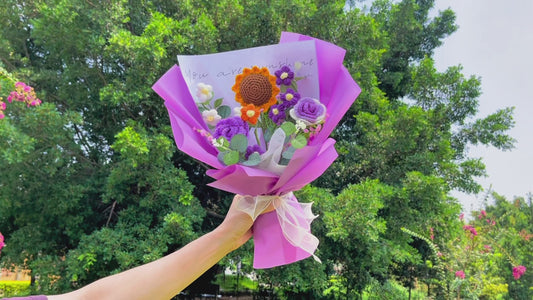 فن يزهر: باقة كروشيه يدوية الصنع من اللافندر والزهور المختلطة - نسيج حيوي من الحب والاحتفال
