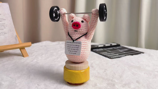 Crochet Journey to Greatness Piggy Figure - Customizable Personalized Inspirational Message - Birthday Graduation Celebration Gift