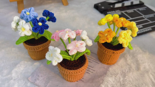وعاء زهور "لا تنساني" كروشيه مصنوع يدوياً بألوان متدرجة - وعاء زهور فريد، ديكور منزلي، هدية صديقة للبيئة لمحبي الحدائق، ومثالي لأعياد الميلاد، الذكرى السنوية، والمناسبات الخاصة