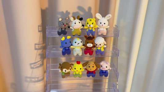 دمى حيوانات الأبراج الصينية الكروشيه - يدوية الصنع قابلة للتخصيص - فأر، ثور، نمر، أرنب، تنين، ثعبان، حصان، ماعز، قرد، ديك، كلب، خنزير