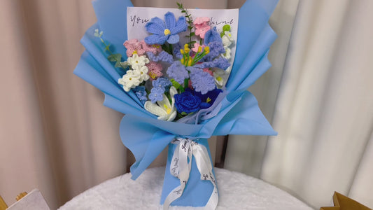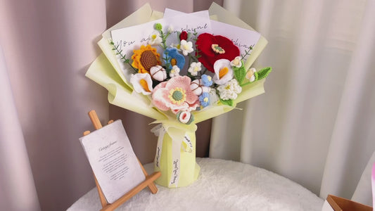 [Shipped from AU] Handmade Crocheted Rose Bouquet with Lilies, Eucalyptus, Tulips, Forget-Me-Nots