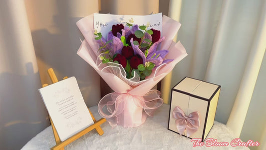 [Shipped from AU] Handmade Crocheted Purple Flower Bouquet with Lilies, Roses, Lavender & More