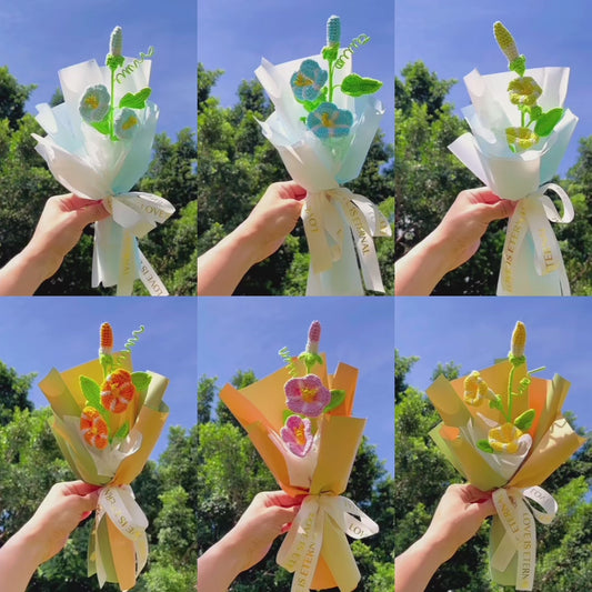 Arreglo floral surtido de ganchillo integral hecho a mano, regalos para la graduación, idea única de regalo para personas con fiebre del heno, regalo del Día de la Madre, regalo del Día del Padre, ideal para visitas