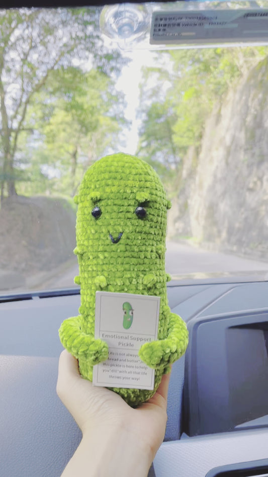 El texto personalizado dice: "Apoyo emocional en Pepinillos para el conjunto de paquetes. Recupérate pronto. Regalo hecho a última hora, positivo y hecho a mano para el amante de los pepinillos. Manténte feliz y motivado.