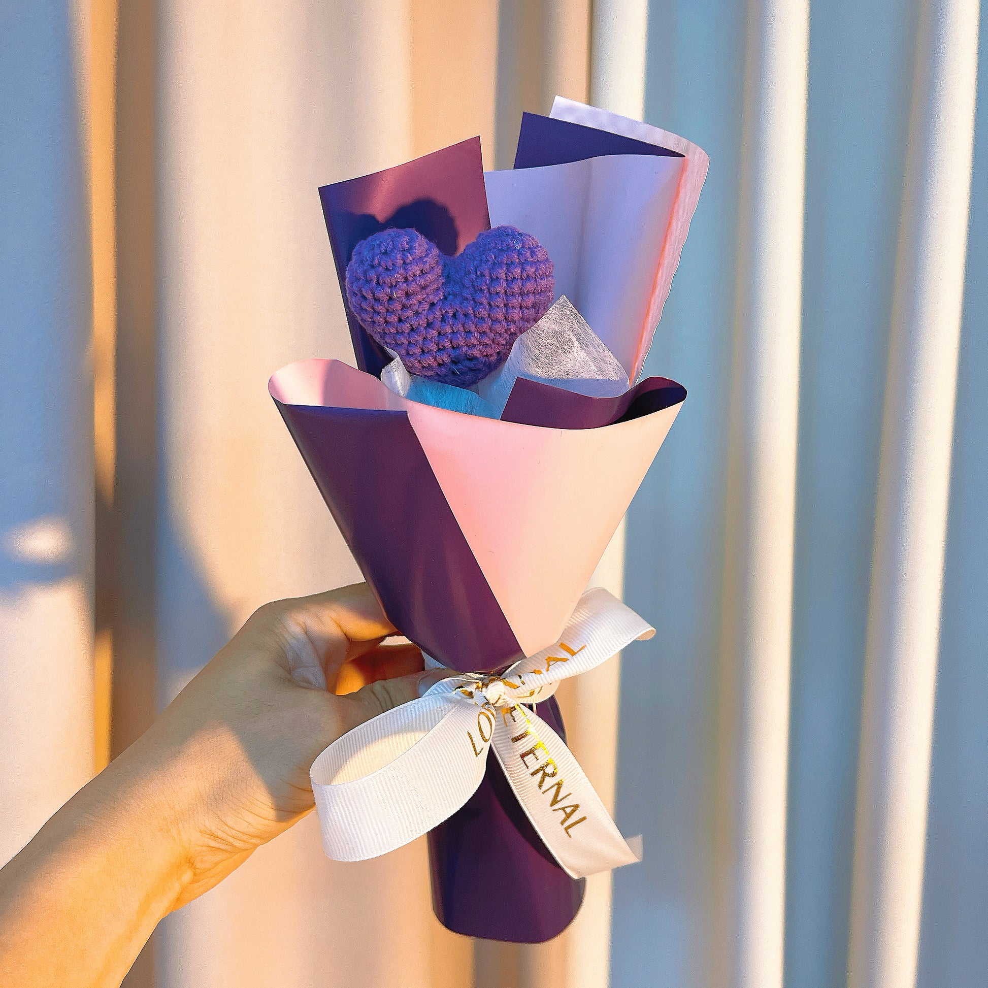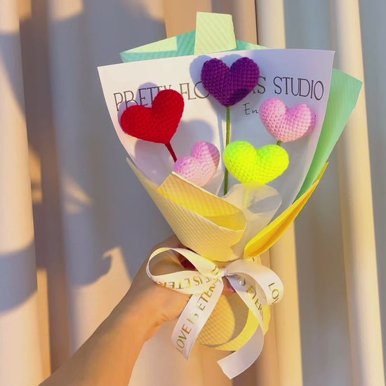 Bouquet de coeurs au crochet fait main enveloppé - Cadeau de Saint-Valentin, cadeaux d'anniversaire pour petite amie, anniversaire, cadeau pour femme, fleur éternelle