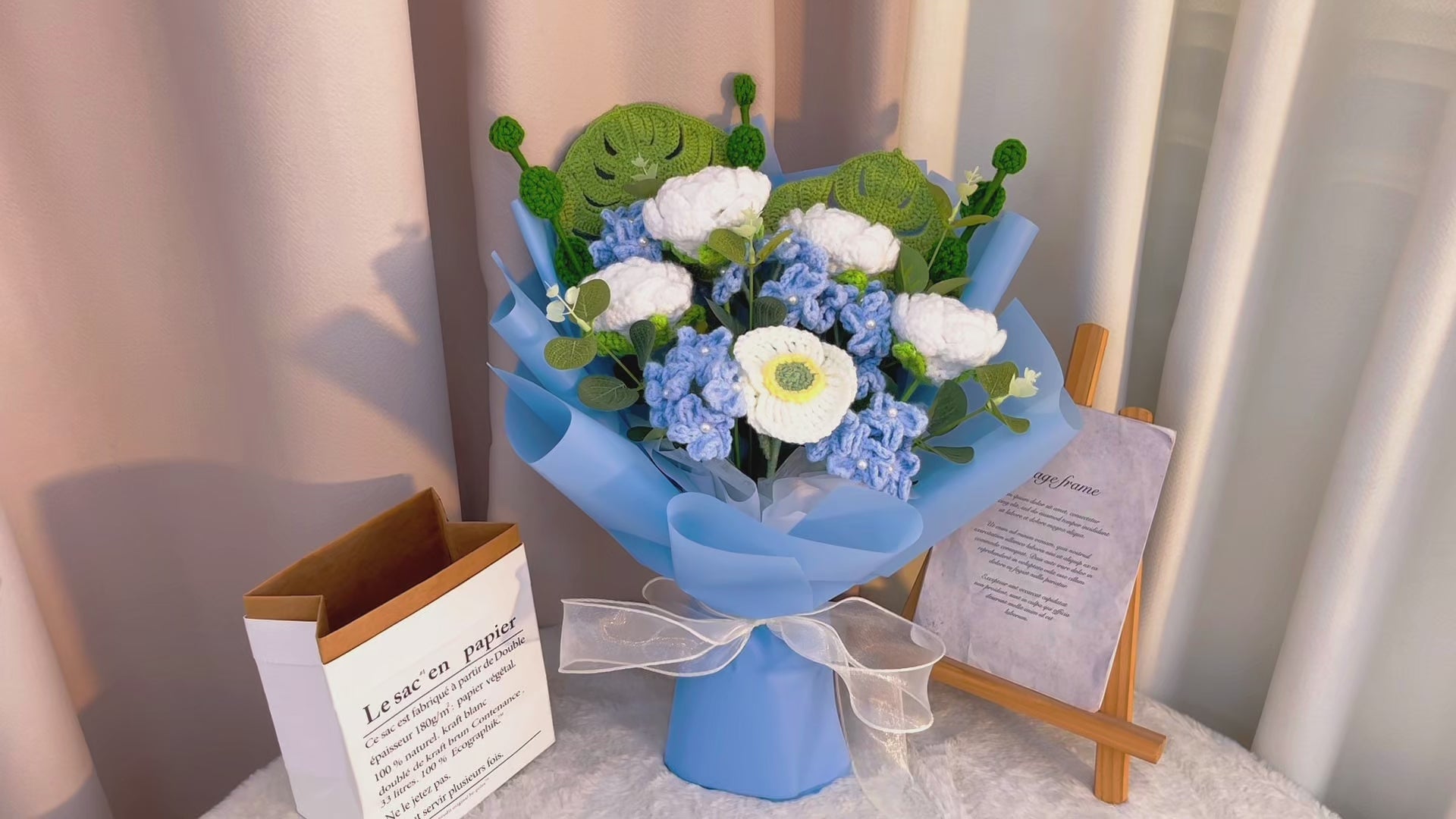 Experience the serene beauty of a modern botanical masterpiece with our exquisite handmade crochet bouquet. Meticulously crafted from premium yarn, this arrangement harmoniously blends floral romance with lush greenery, capturing the elegance of nature without the pollen or perishability of real flowers. Perfect for allergy-sensitive individuals and lovers of lasting artistry, this bouquet offers a timeless expression of sentiment and style.