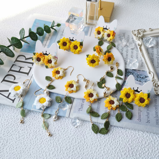 花瓶に挿すだけの手編みフラワーセット|枯れない秋の花々|秋のインテリア・ウェディング・感謝祭の贈り物に|花粉症対策・アレルギー対応