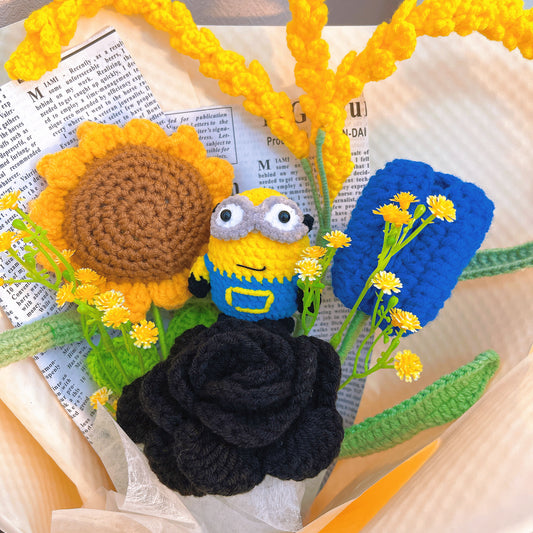 ミニオンと一緒!手編みのキャラクターブーケ|枯れない花束|卒業祝い・誕生日ギフトに|ユニークなものが好きな友人への贈り物 花粉症対策・アレルギー対応