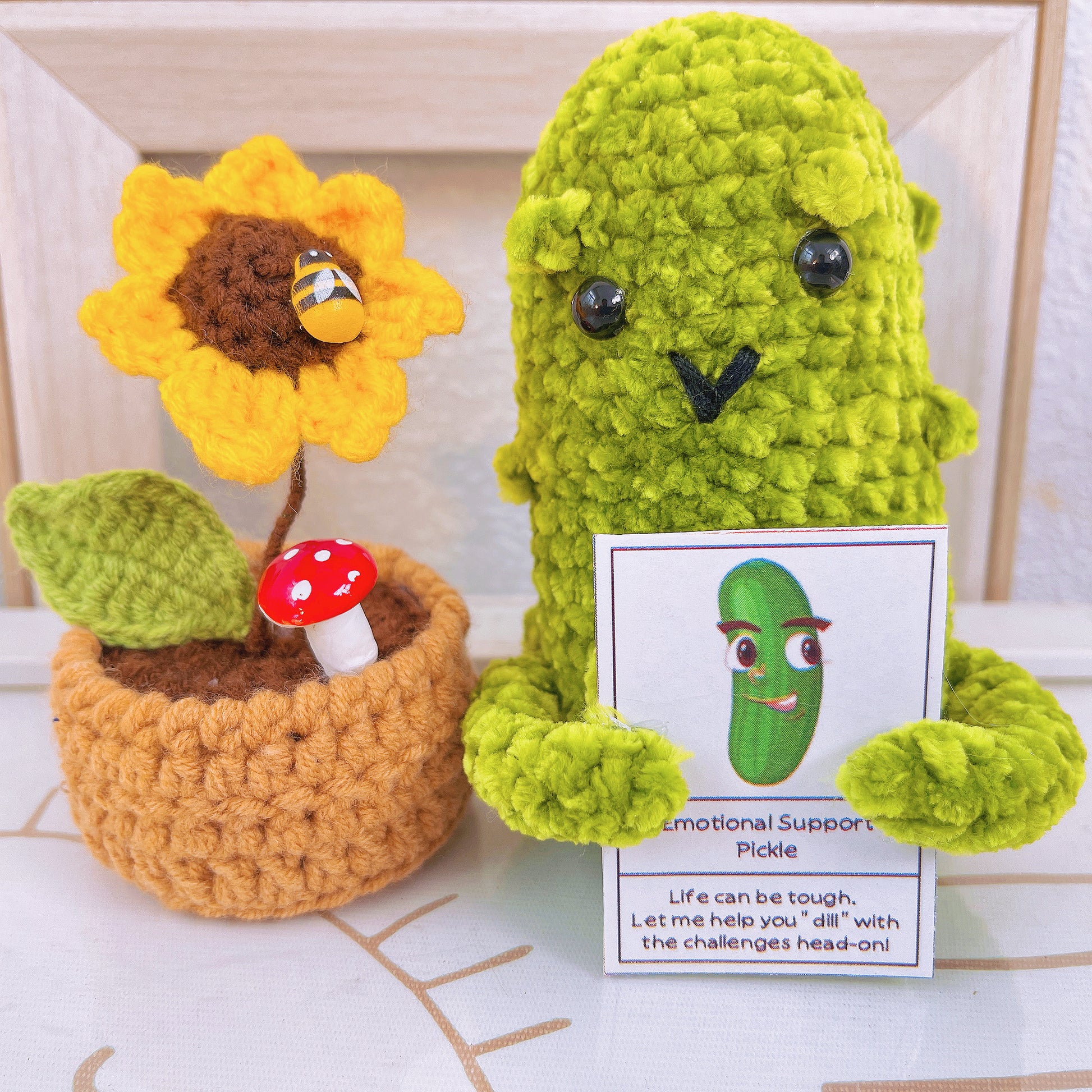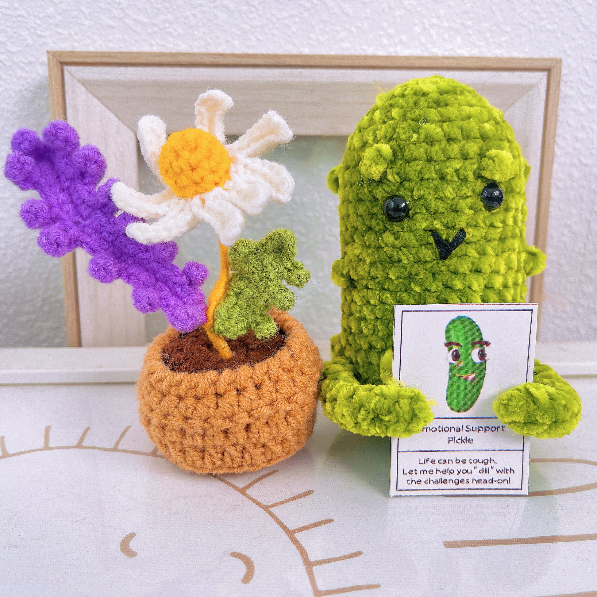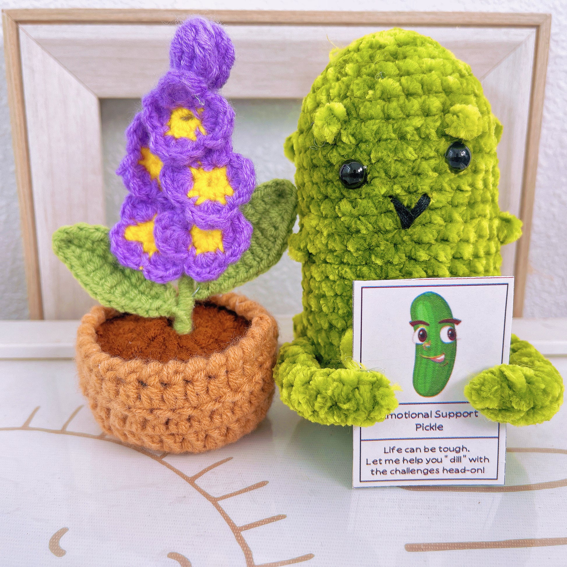Handcrafted Crochet Supportive Pickle and Blossomed Pot Bundle Set (Custom / Personalized Text Available) - Surgery Recovery Get Well Soon Hospitalization Post Care Congrats Cute Birthday Gift