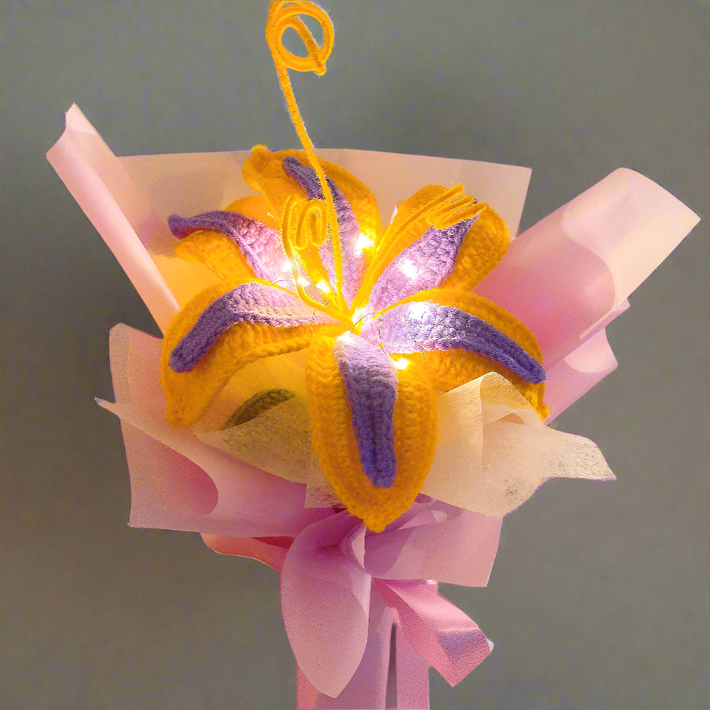 ラプンツェルの魔法の花、手編みのサンシャイン・ブロッサム|枯れない花|LEDライトオプション付き|誕生日・ウェディングギフト|花粉症対策・アレルギー対応