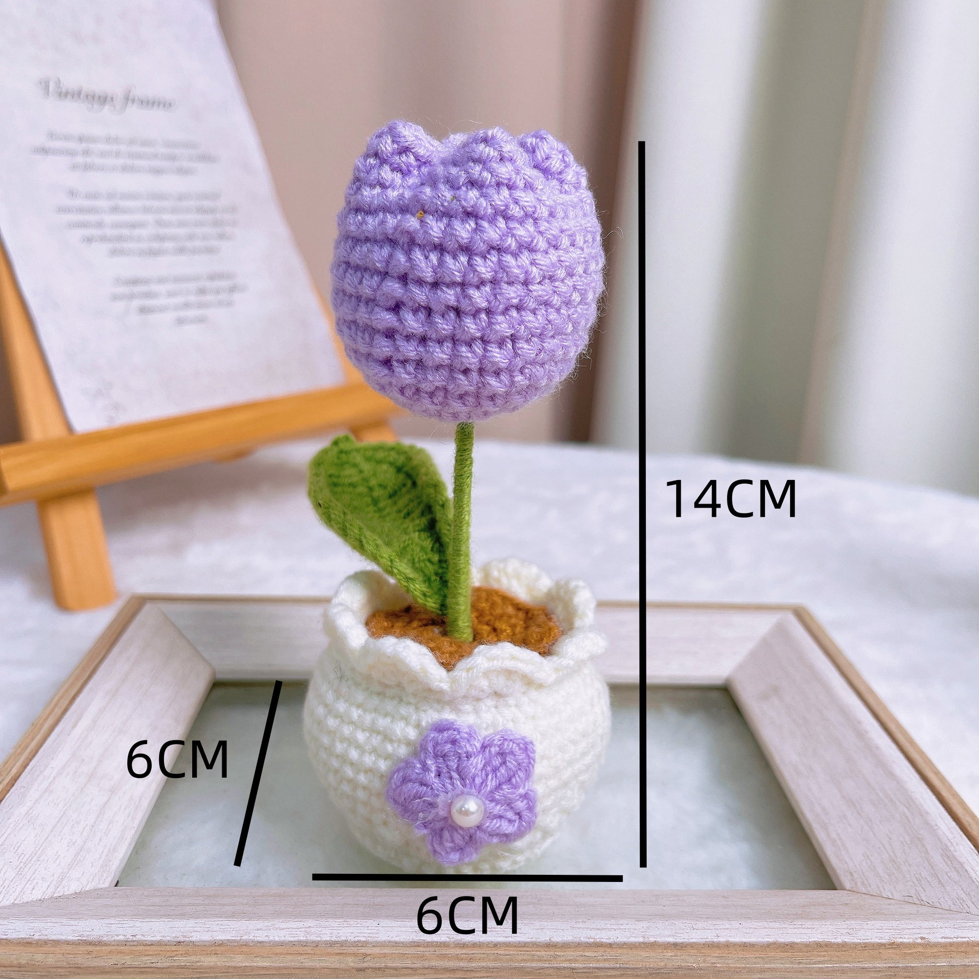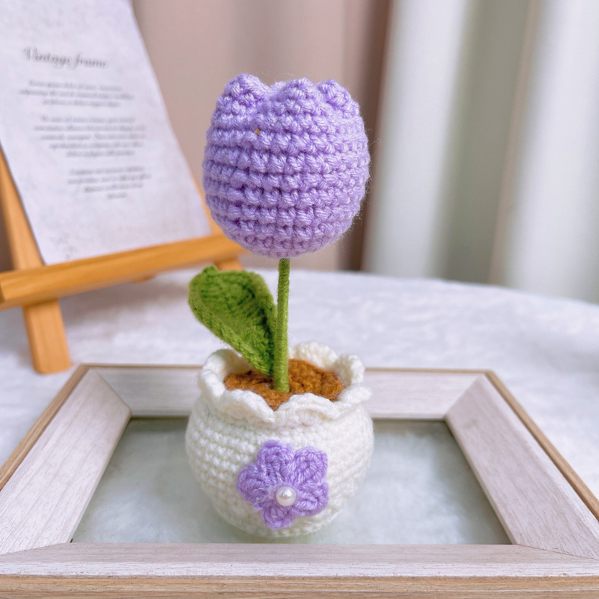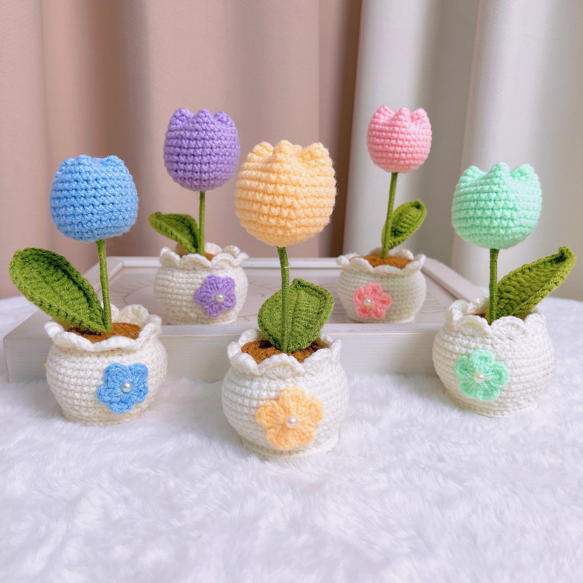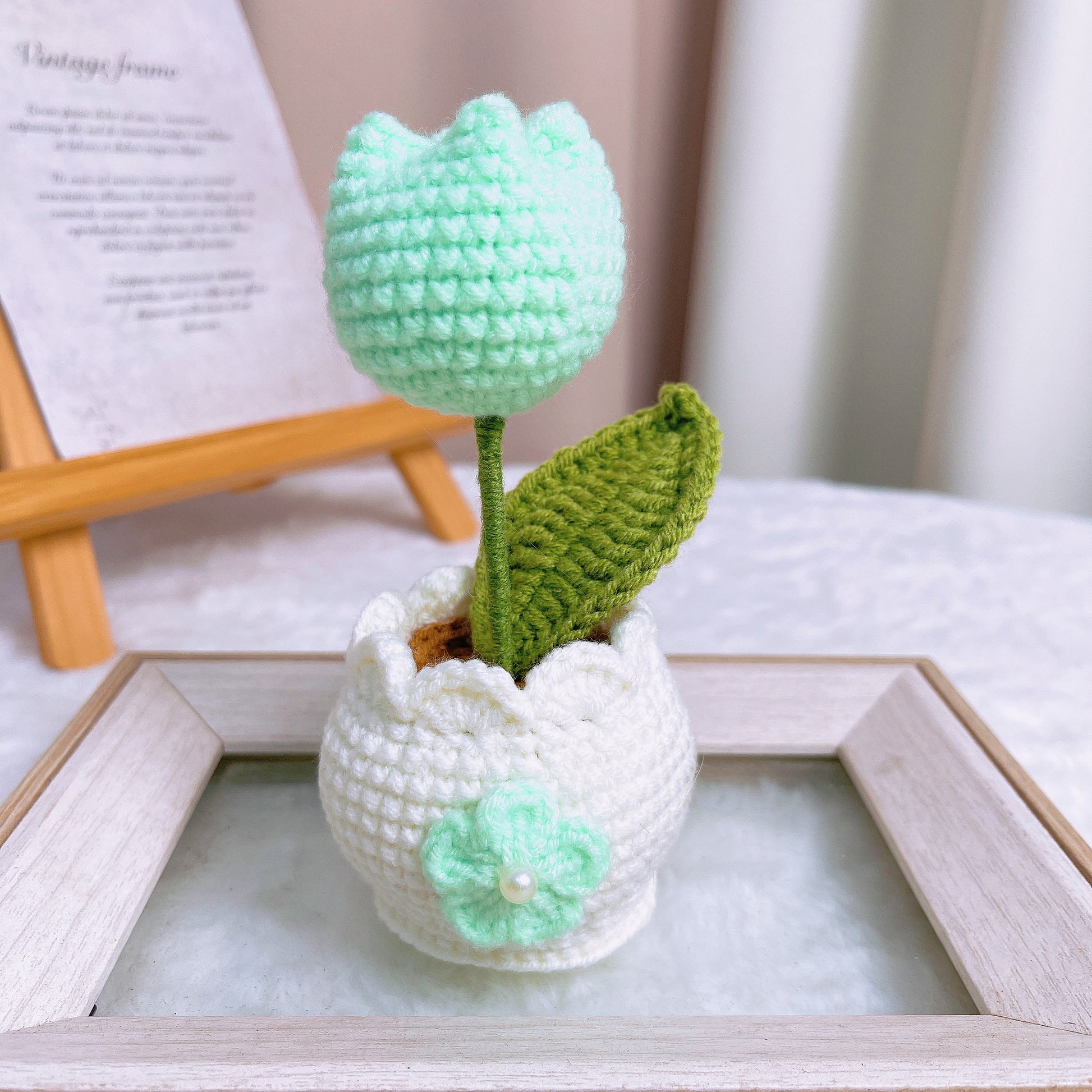手作りかぎ針編み 「春を待つチューリップ」手編みプランター|選べる5色|ピンク・パープル・イエロー・ブルー・ミント|ホームデコレーション・誕生日・記念日・新築祝いギフトに