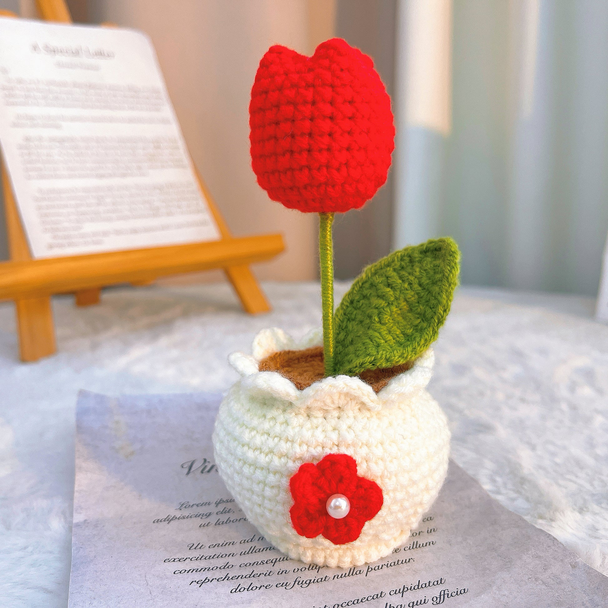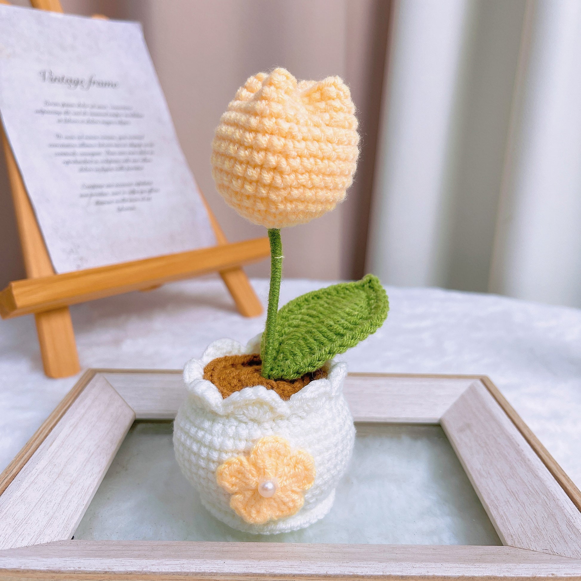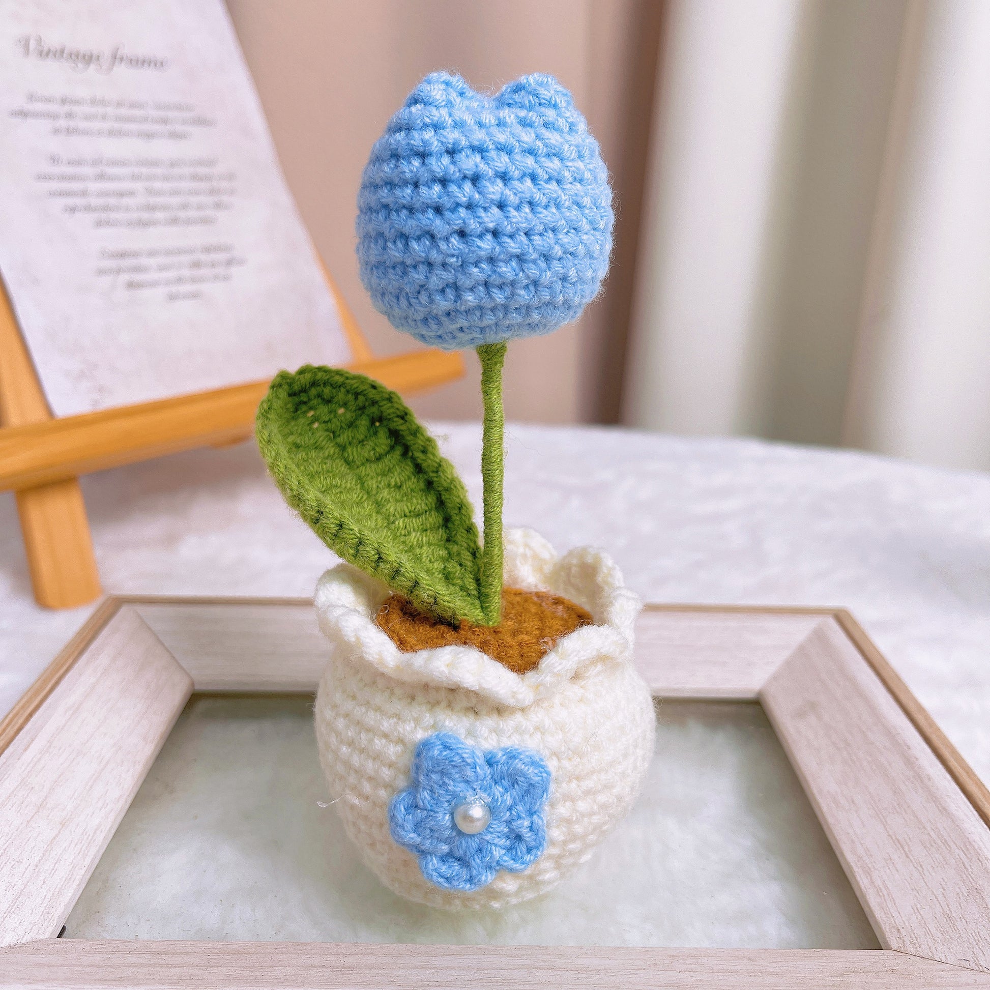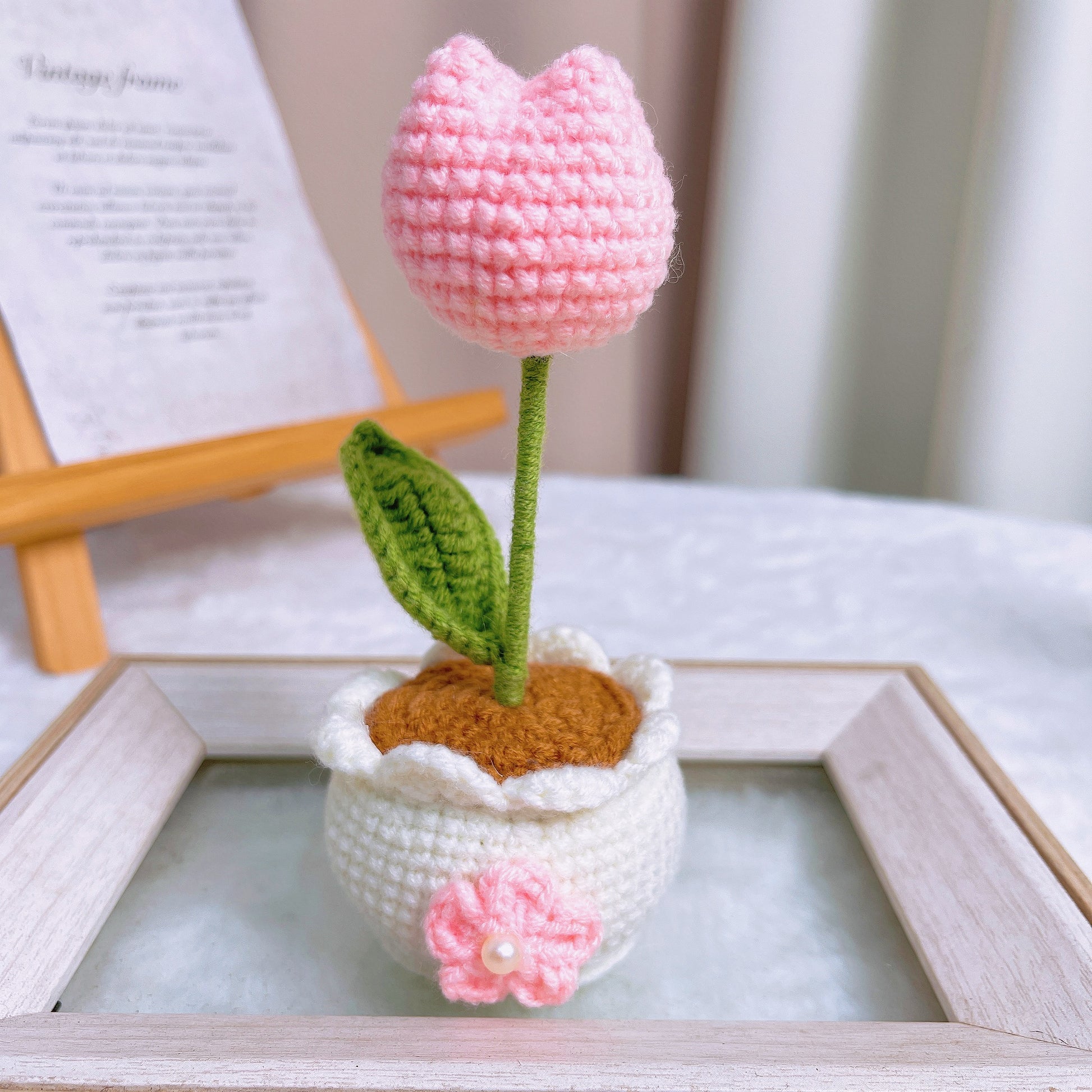 手作りかぎ針編み 「春を待つチューリップ」手編みプランター|選べる5色|ピンク・パープル・イエロー・ブルー・ミント|ホームデコレーション・誕生日・記念日・新築祝いギフトに