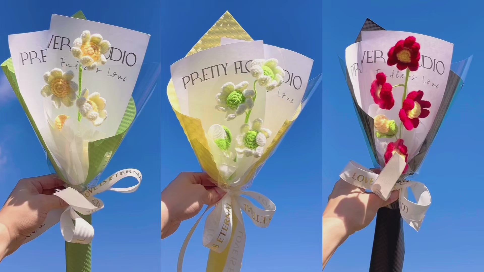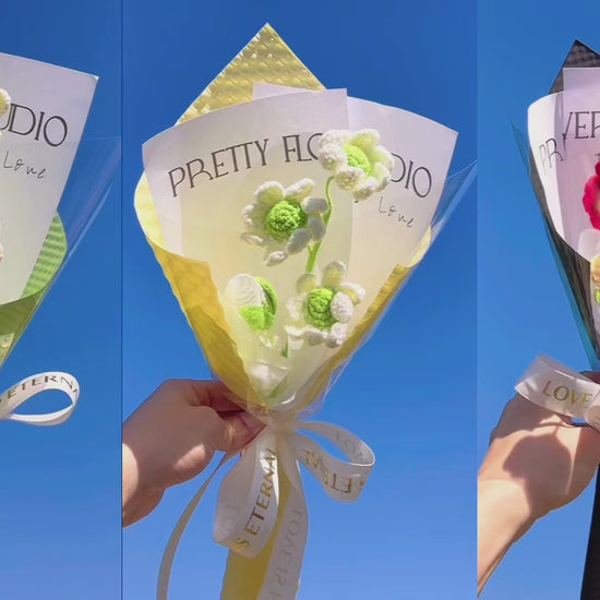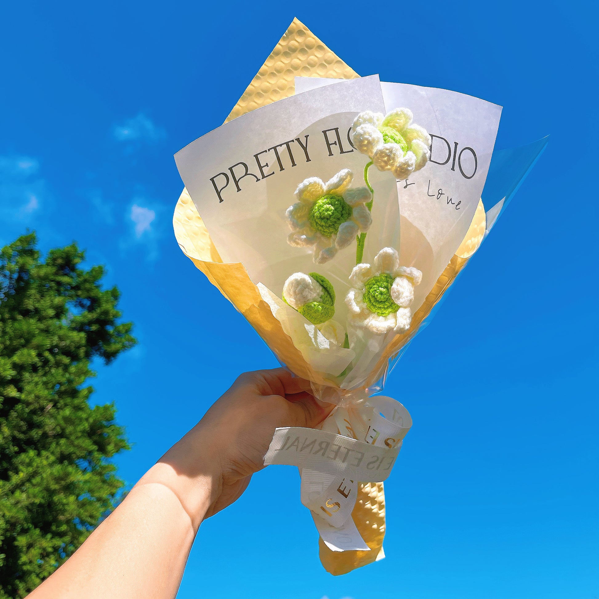 11月誕生花 キクブーケ|手編み 手作りかぎ針編み 毛糸 造花 花束 単茎アレンジ|上品なラッピング付き 誕生日・七五三・新たな門出の贈り物 フラワーギフト 花粉症対策・アレルギー対応