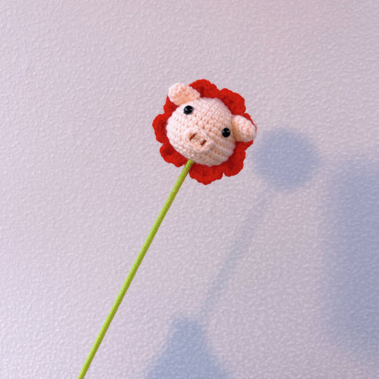 Piggy Bloom: Ręcznie Wykonany Hakowany Śliczny Główka Świni z Kwiatowym Końcówką do Żartliwej Dekoracji Ogrodu