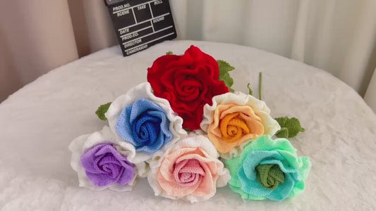 Large Hand Crocheted Single Rose Flower, Allergen-Free Artificial Knitted Yarn Flower for Wedding, Valentine's Day, Mother's Day, Home Decor (6 Color Gradient Options)