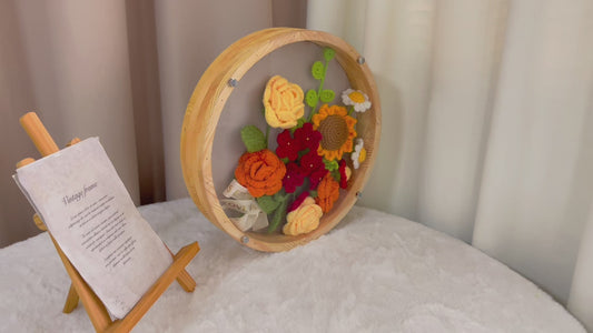 Sunny Breeze Artistry: Ręcznie wykonana dekoracja w kształcie kwiatowej ramki z hakowanej przędzy