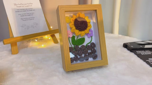 Ręcznie Robiona, Szydełkowa Ramka na Zdjęcia Z Kwiatami, Sztucznymi Ziarnami Kawy i Świecącym Robaczkiem Świętojańskim – Wyjątkowy Prezent jako Dekoracja do Domu, na Urodziny, Wesela i Wiele Więcej
