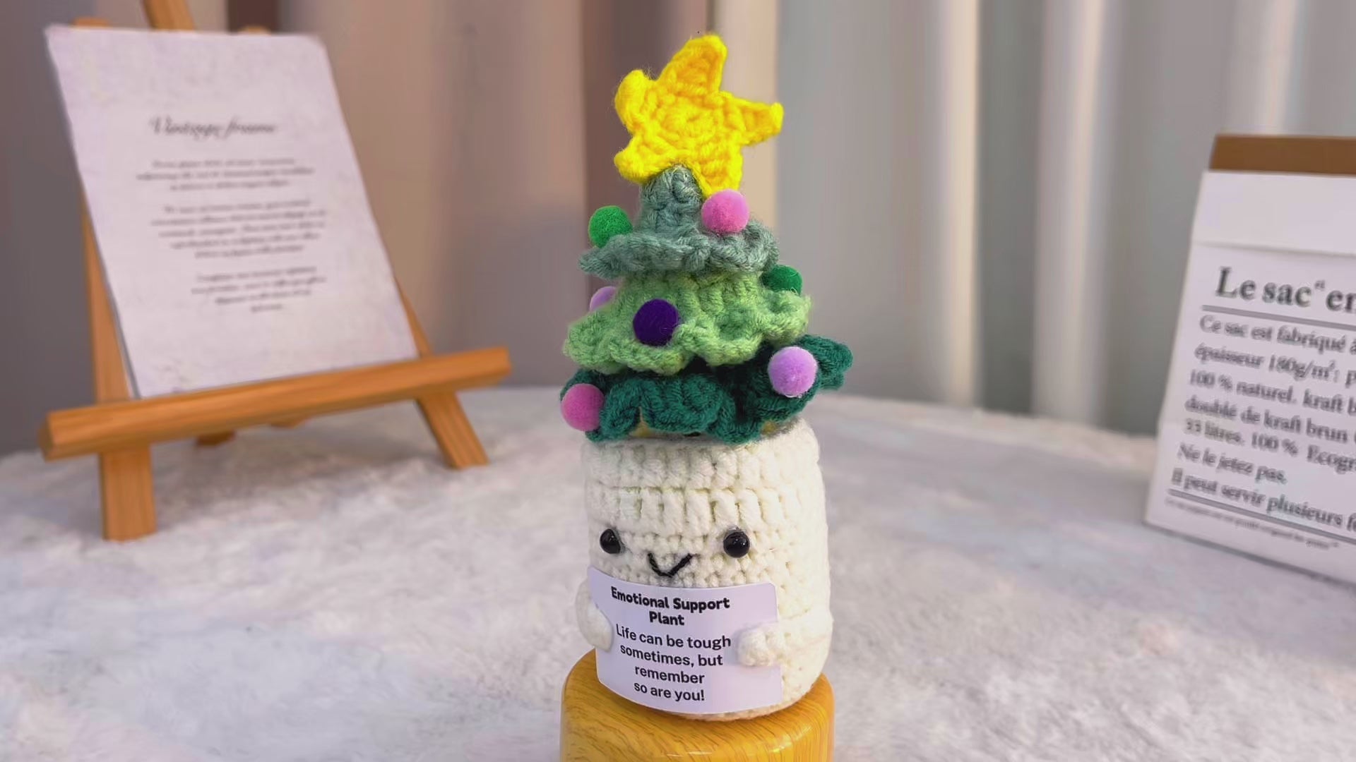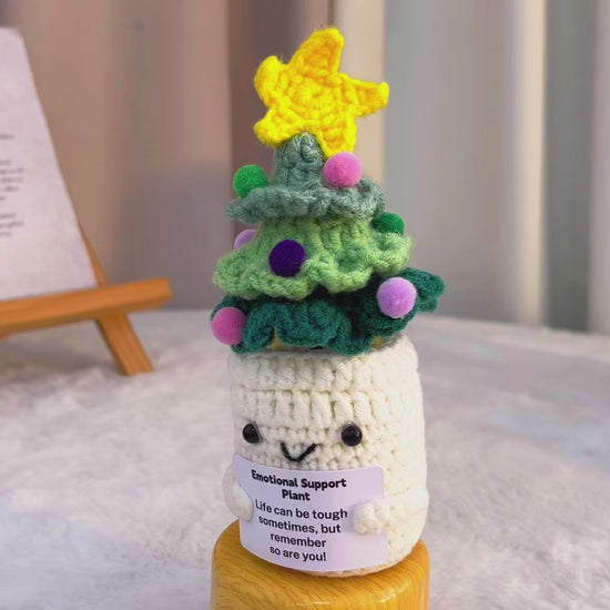 Emotional Support Crochet Christmas Tree, Handmade Xmas Holiday Festive Decor, Tabletop Ornament with Customizable Encouragement Card, Gift for Friends