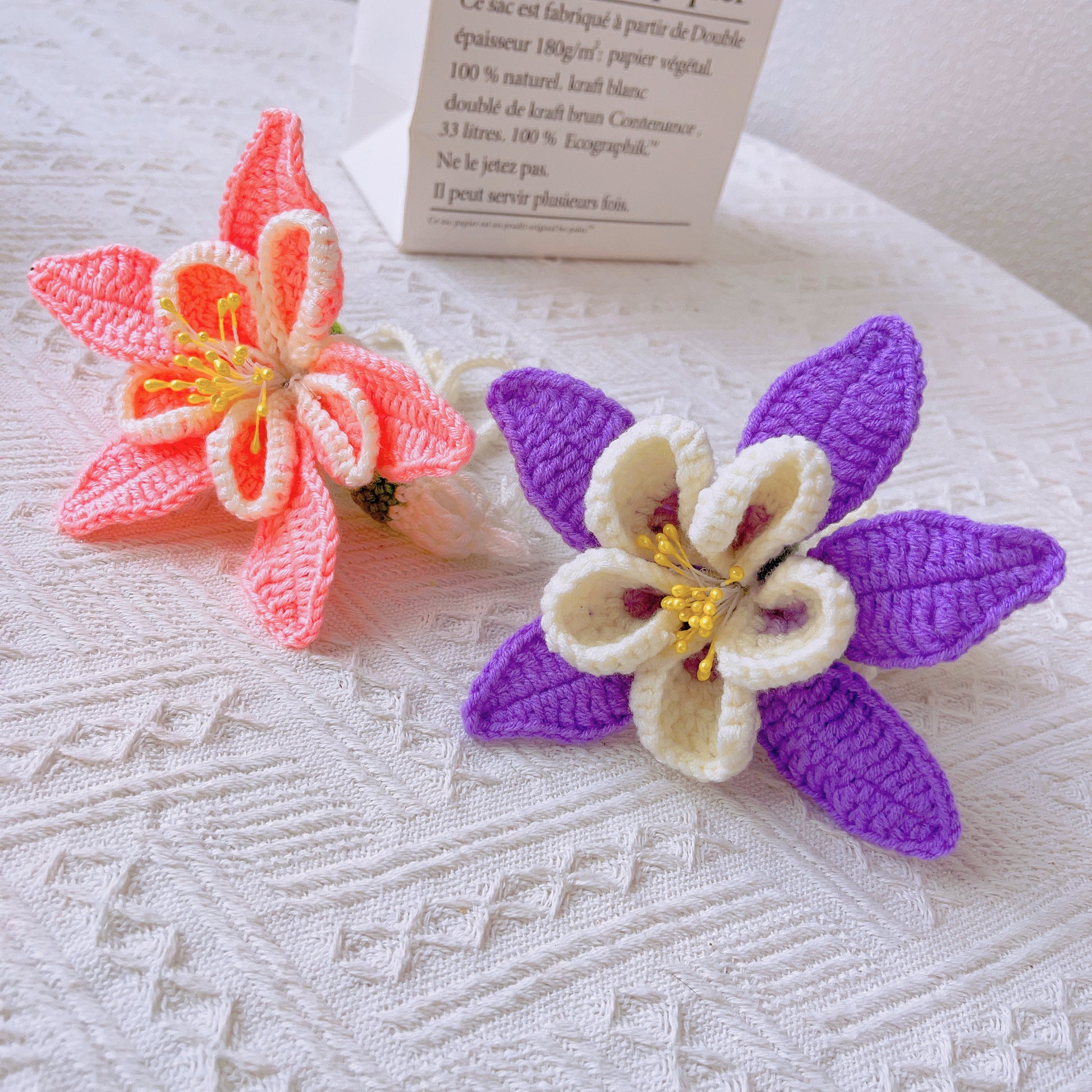 Buquê de Estacas de Flores de Crochê com Gotas de Sol Camaleônicas