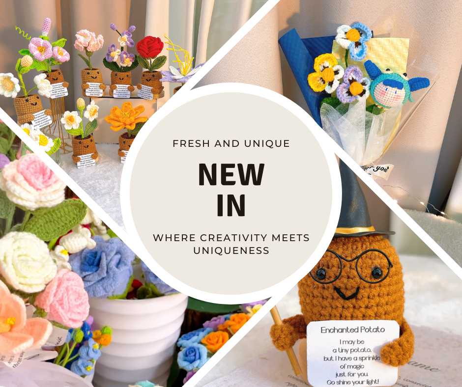 在這裡,我們透過將你的創意靈感化為令人驚豔的手工鉤針花束,來慶祝客製化的美好。此系列中的每束花都是獨一無二的傑作,直接受我們珍貴顧客的點子所啟發。無論你心中已有特定的花朵、偏愛的色彩搭配,或是特殊的主題,我們都會與你密切合作,捕捉你靈感的精髓。我們的技藝精湛的工匠全心投入於每一件作品,確保每束鉤針花束不僅是一件令人愉悦的藝術品,更反映了你個人的風格。這些鉤針花束非常適合送禮、家居裝飾或特殊場合,能為任何環境增添一抹奇幻與魅力。不同於傳統花束,這些創作永不凋零,成為那些特殊時刻的美麗見證。深入探索「你的點子,我們的鉤針花束」系列,讓你的想像力綻放。與我們分享你夢想中的花束,然後看著它以色彩繽紛的毛線和精緻的設計栩栩如生,專為你以愛心打造。我們可以共同創造一件永恆的花卉珍寶,為你帶來多年的歡樂!