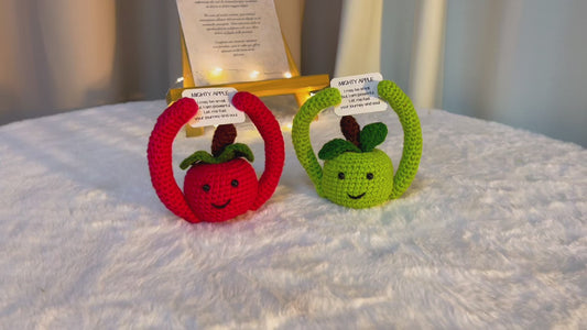 正向鉤織超能蘋果毛絨玩偶 - 強大能量客製化訊息禮物,適用病中慰問、住院陪伴、振奮精神、考試應援、工作壓力舒緩