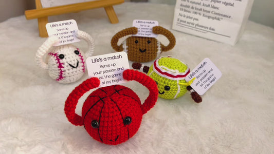 手工鉤針運動球類鑰匙圈——籃球、棒球、美式足球、網球 - 可客製化祝福語的禮物 - 專為運動愛好者、生日、節日及特殊場合打造