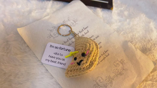 幸運籤餅鑰匙圈(附客製化小卡)|手作鉤針編織|正能量小禮物|送閨蜜・同事・生日・聖誕節禮物