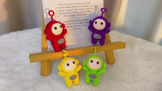 手工製作鉤針造型玩偶——繽紛黃、綠、紅、紫色系可愛毛絨玩具,適合孩童、家居裝飾、禮品,適用生日、嬰兒滿月禮、復活節及節慶場合