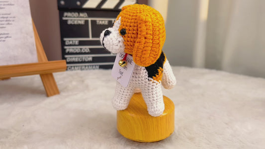 鉤針小獵犬擺飾|客製化姓名牌手作萌系混色小獵犬「東尼」寵物玩偶(附鈴鐺)|愛犬人士、生日禮物與家居裝飾的完美之選