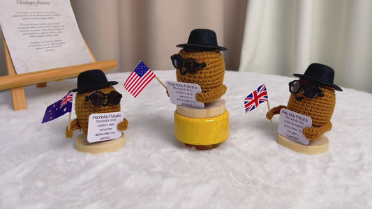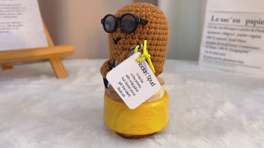 手工鉤針搖滾馬鈴薯玩偶 - 附正能量客製卡片、太陽眼鏡與吉他裝飾,搖滾樂迷與居家佈置最佳禮物