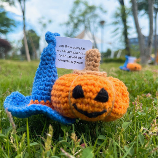 帶有巫師帽的靈感支援毛線鉤織南瓜玩偶 - 適合萬聖節、秋季、感恩節的室內紡織品與復古裝飾