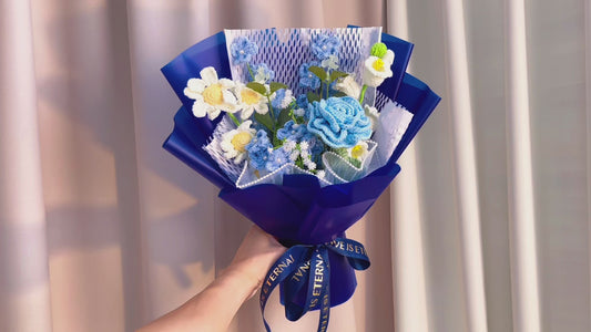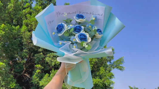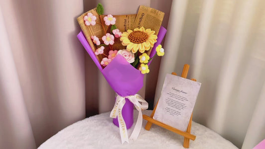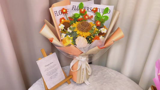 陽光花瓣協奏曲 - 手作鉤針花束(玫瑰/向日葵/泡芙花)|節慶送禮精選