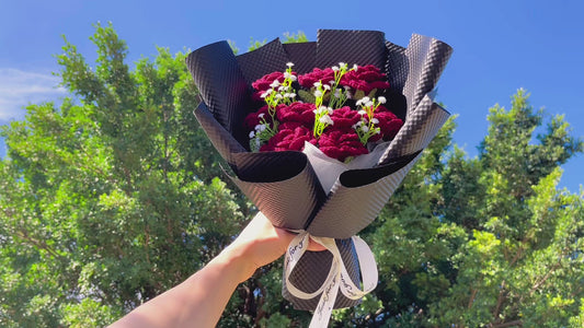 酒紅鉤針玫瑰+白滿天星花束|週年紀念/情人節/居家裝飾/永久保存人造花