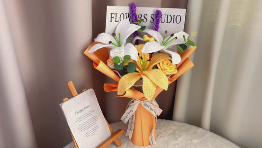 絕美手鉤黃色花束:百合、玫瑰、波波球與薰衣草
