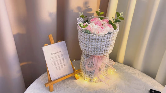 手工製作的永恒花束-鉤針玫瑰鬱金香康乃馨-婚禮、周年紀念、生日慶典的防過敏禮物