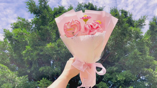 花屋系列手工粉色康乃馨鉤針花束-低過敏持久花藝母親節禮物套裝