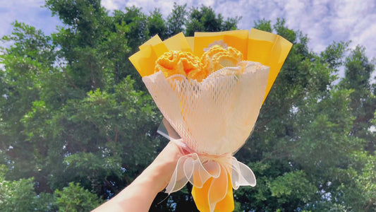 花屋系列手工黃色康乃馨鉤針花束-低過敏持久花藝畢業生日母親節禮物套裝
