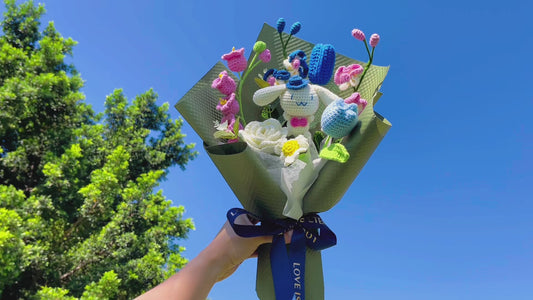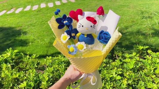 手作鉤織機器貓主題花束 - 低敏友善禮物・客製化日本動漫畢業生日花禮