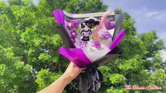手作鉤針紫色貓咪主題花束 - 酷洛米(Kuromi)風格 生日/紀念日送禮 - 過敏友善設計