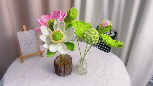 鉤針蓮花盛放系列 - 手作與DIY天地、溫馨家居裝飾、花瓶插花、鉤針靈感、獨特桌心裝飾、設計