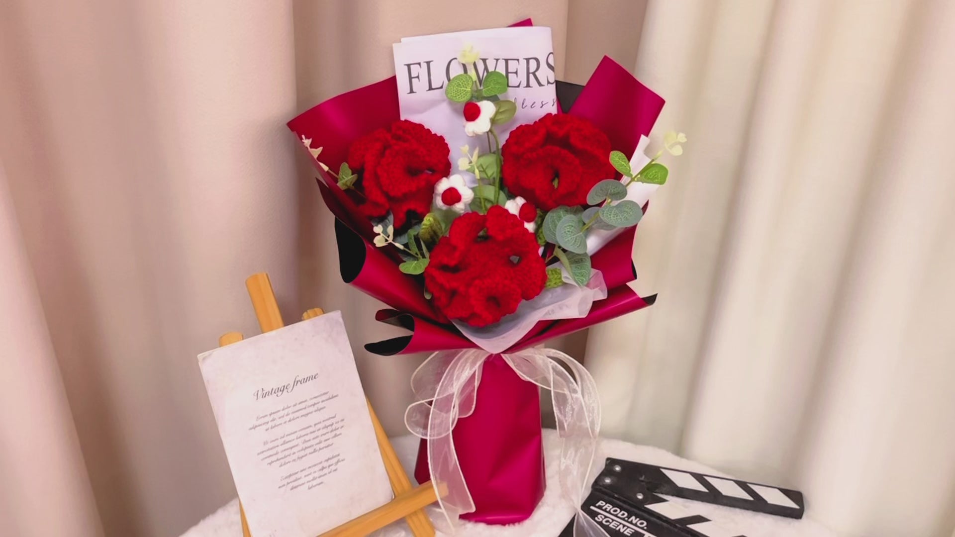 手工絨鉤編織「璀璨財富」9朵紅玫瑰花束 - 適合任何場合的絕美禮物