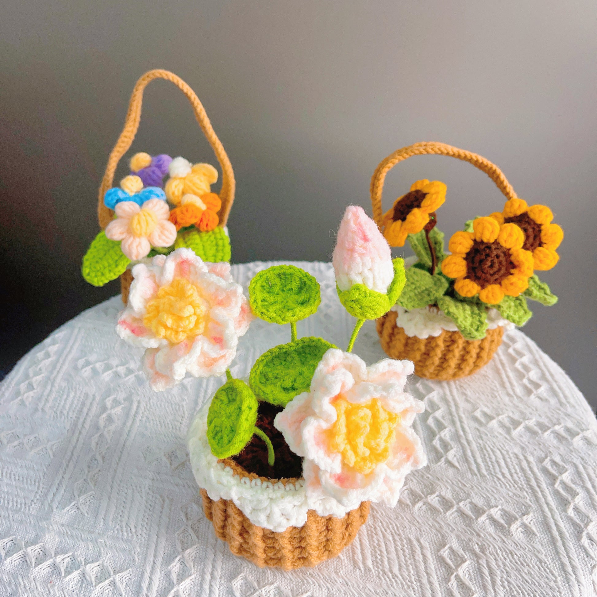 波希米亞風鉤針編織向日葵花籃 - 手工製作家居裝飾