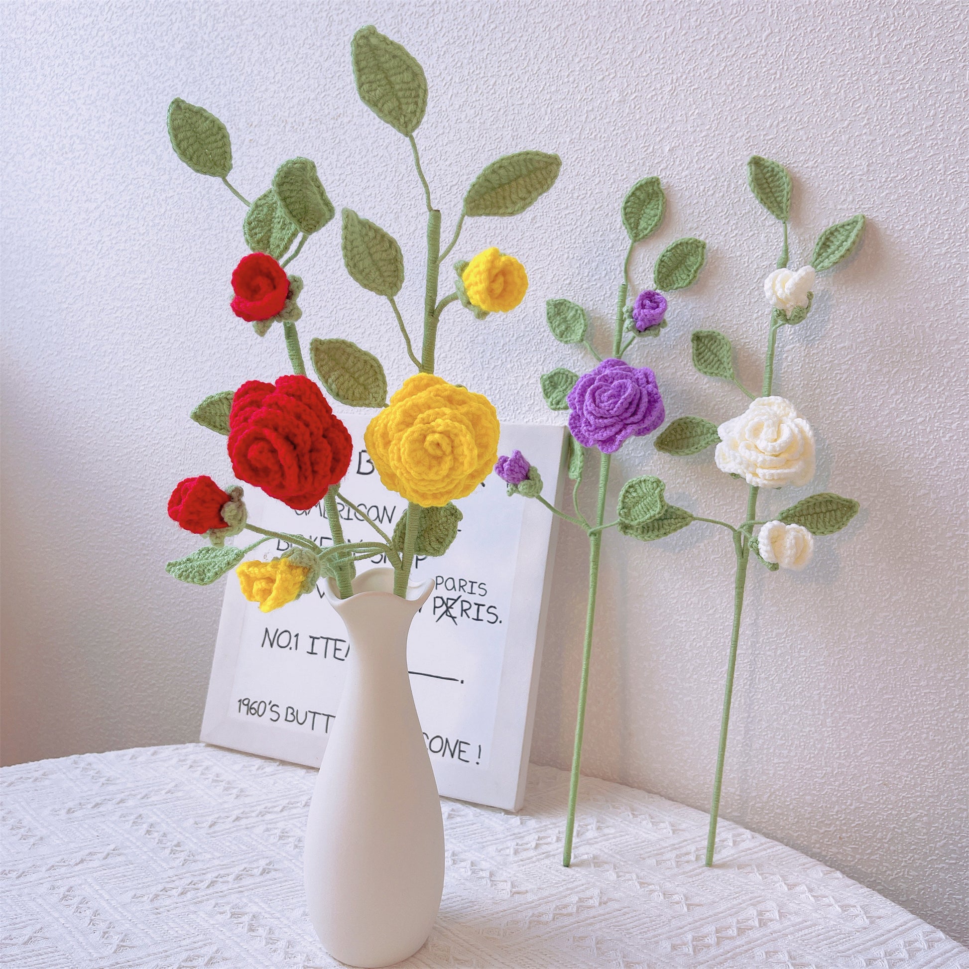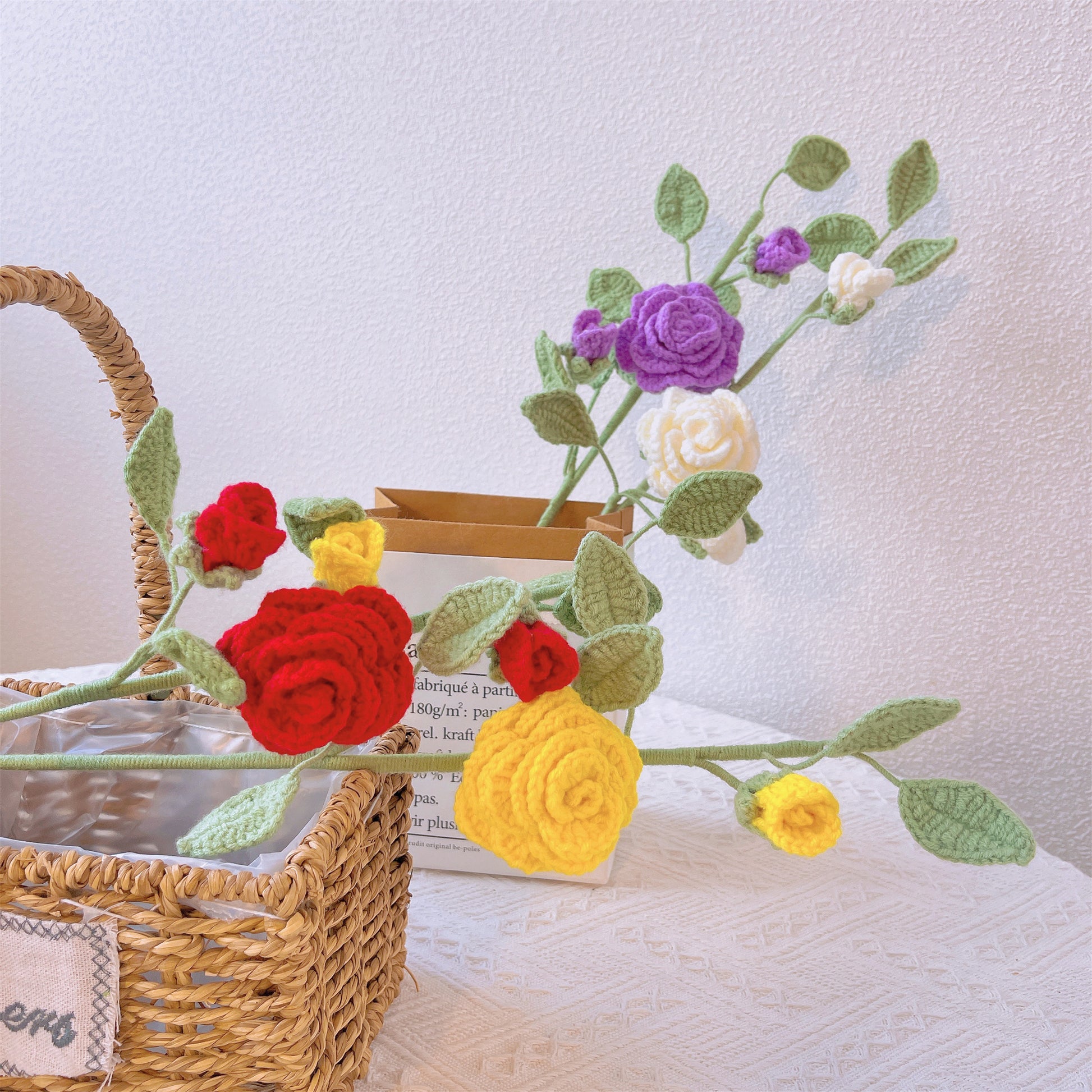 藍調手工鉤針編織花卉花束 - 玫瑰與鬱金香,適合家居裝飾、父親節、畢業典禮、祝願康復、友誼表達、花粉過敏者友好、節慶探訪