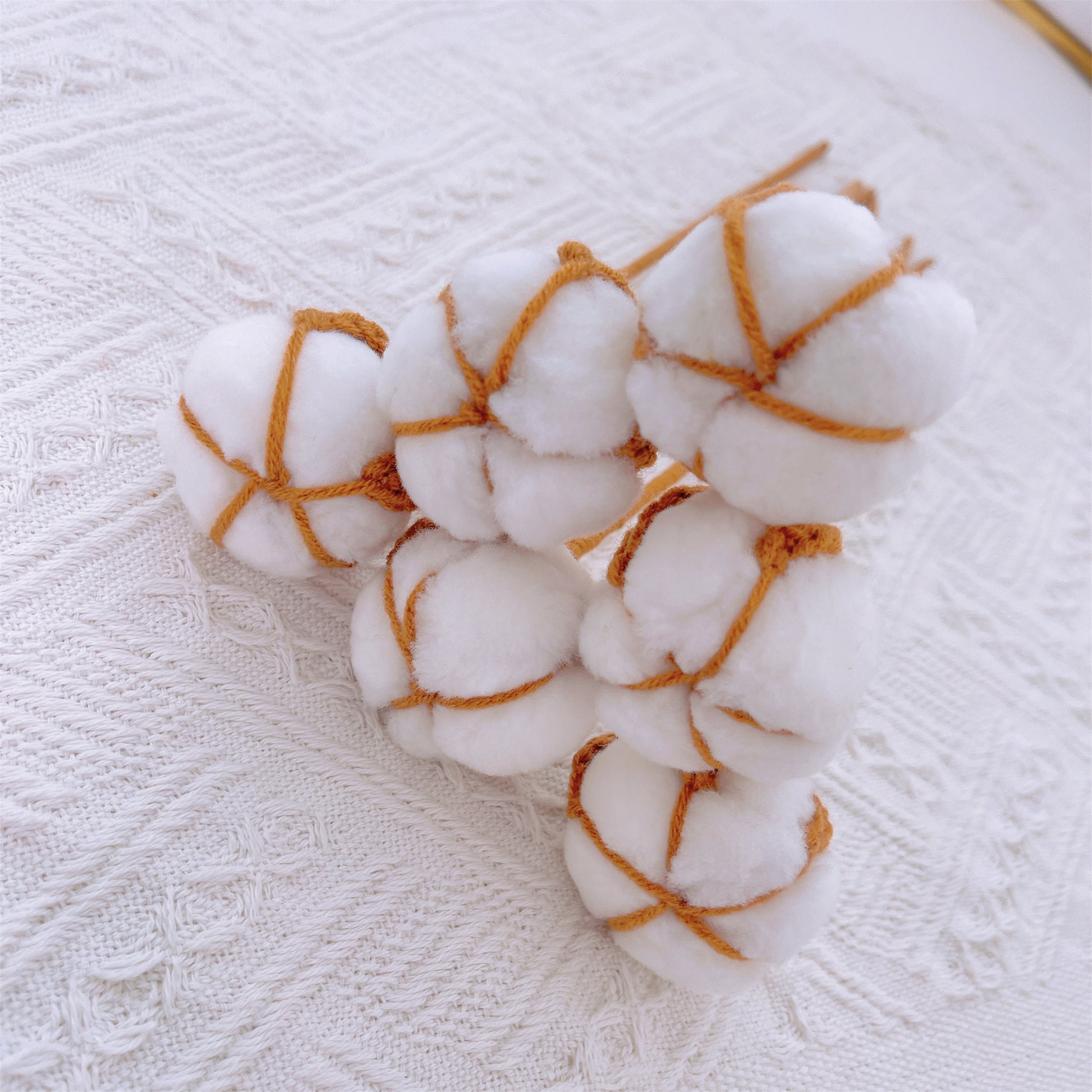 「棉絮清風」棉花花插針在製作時,既考量耐用性,亦注重美觀度。它適合作為室內外各類空間的裝飾點綴,可輕鬆插入盆栽植物,也能獨立展示,宛如一件精美的藝術品。棉花花的設計簡約卻又不失高雅,能為花園裝飾增添一抹自然之美。