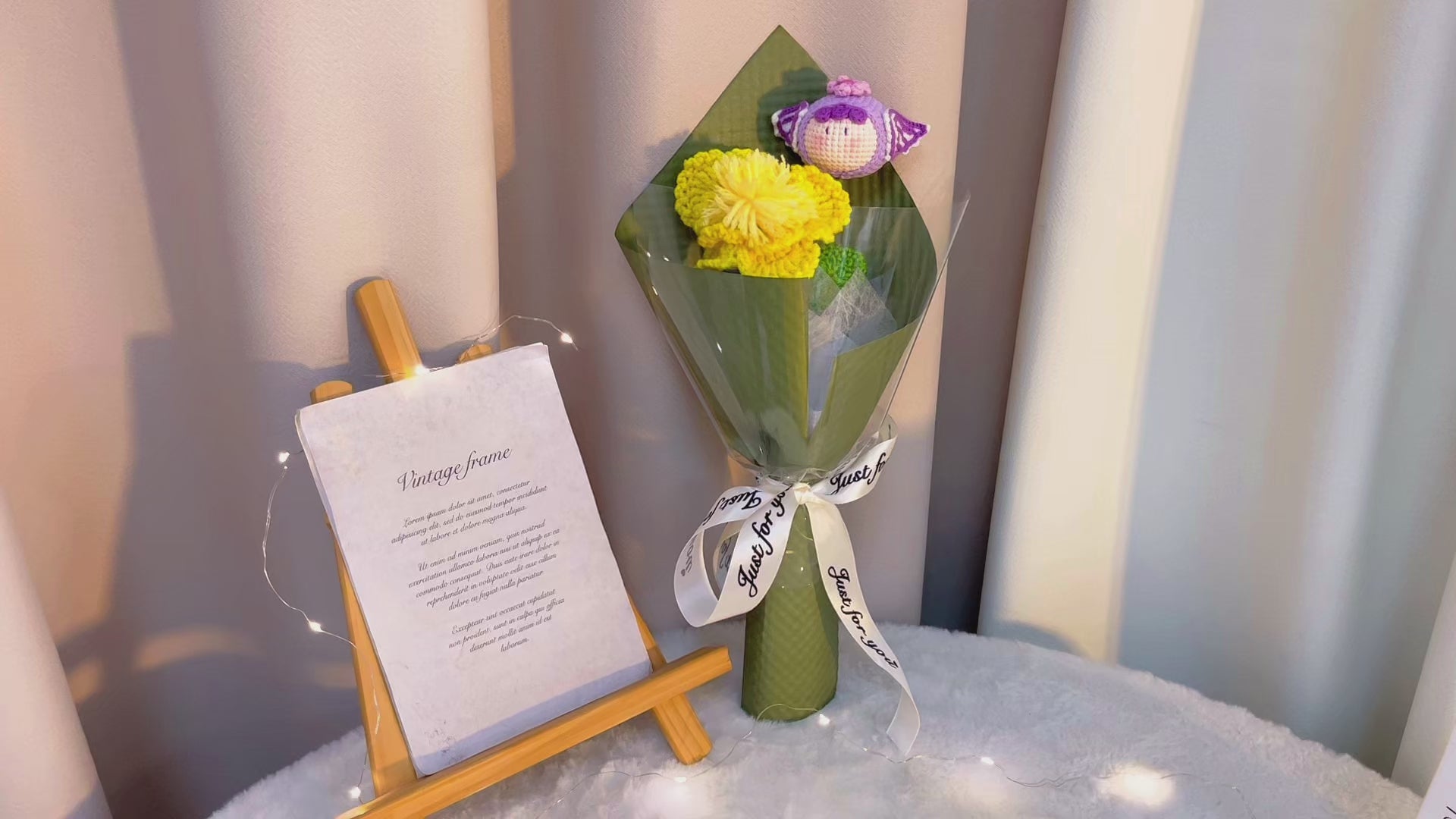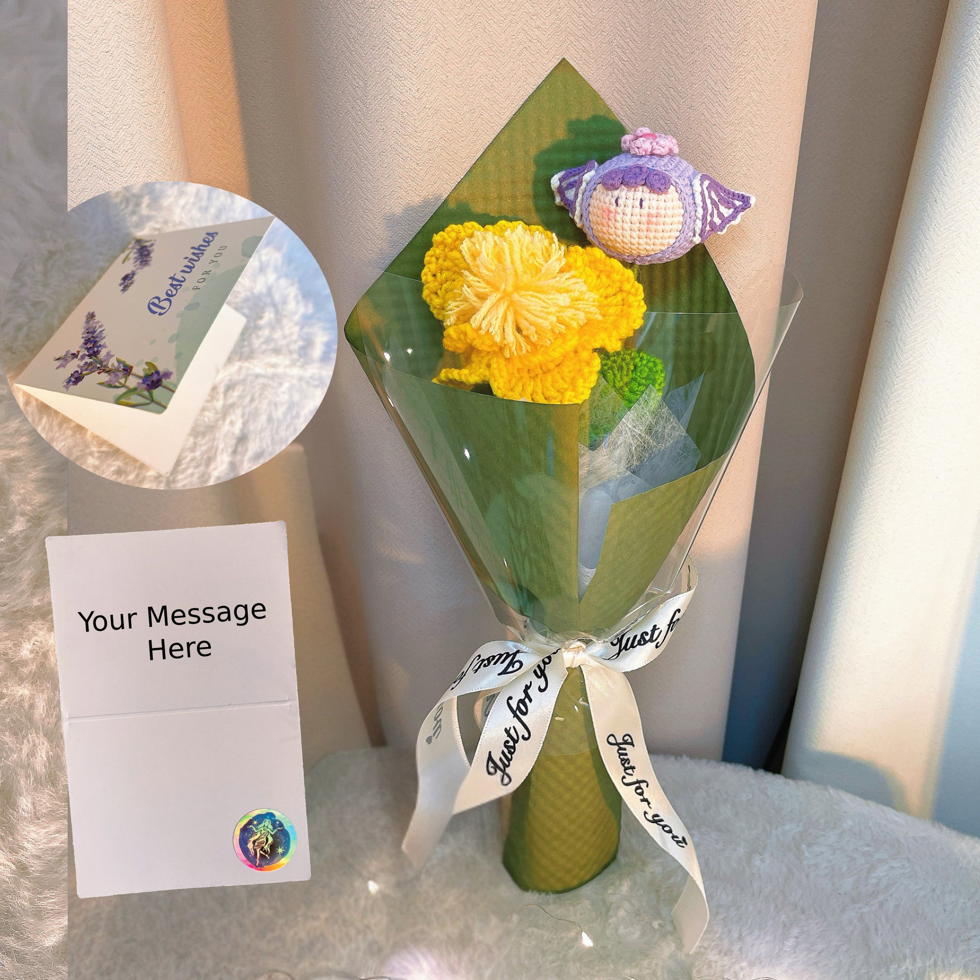 處女座的完美花禮:手作鉤織毛茛花束用我們精緻的手工鉤織花束,捕捉處女座追求完美的靈魂吧!這份迷人的花禮,由充滿陽光氣息的黃色毛茛花和可愛的處女座娃娃組成。花束以清爽的綠色格紋紙精心包裝,打造出清新又永恆的自然風格。
