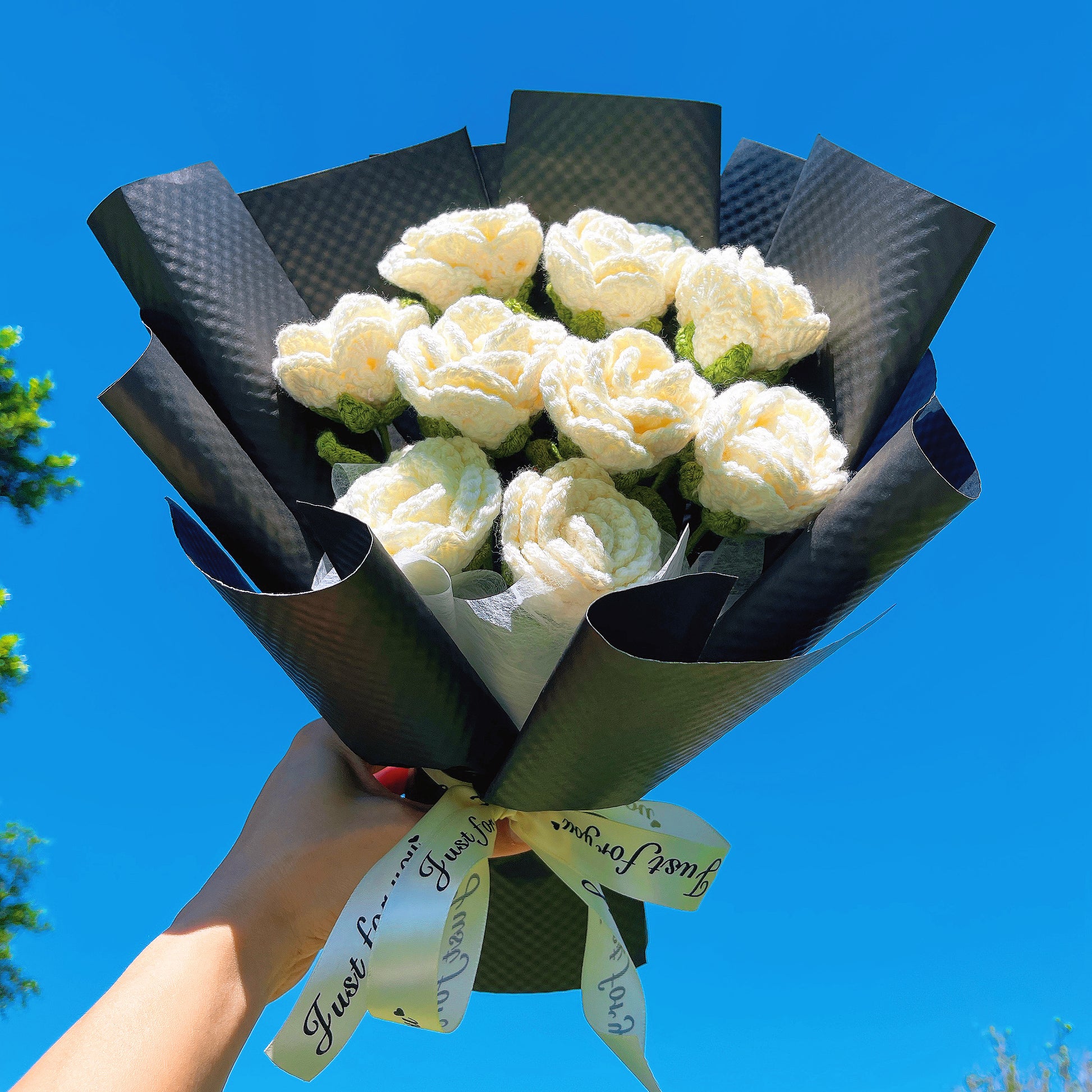 手作鉤織白色玫瑰追思花束|不過敏、永不凋謝|紀念逝者的永恆追思花禮