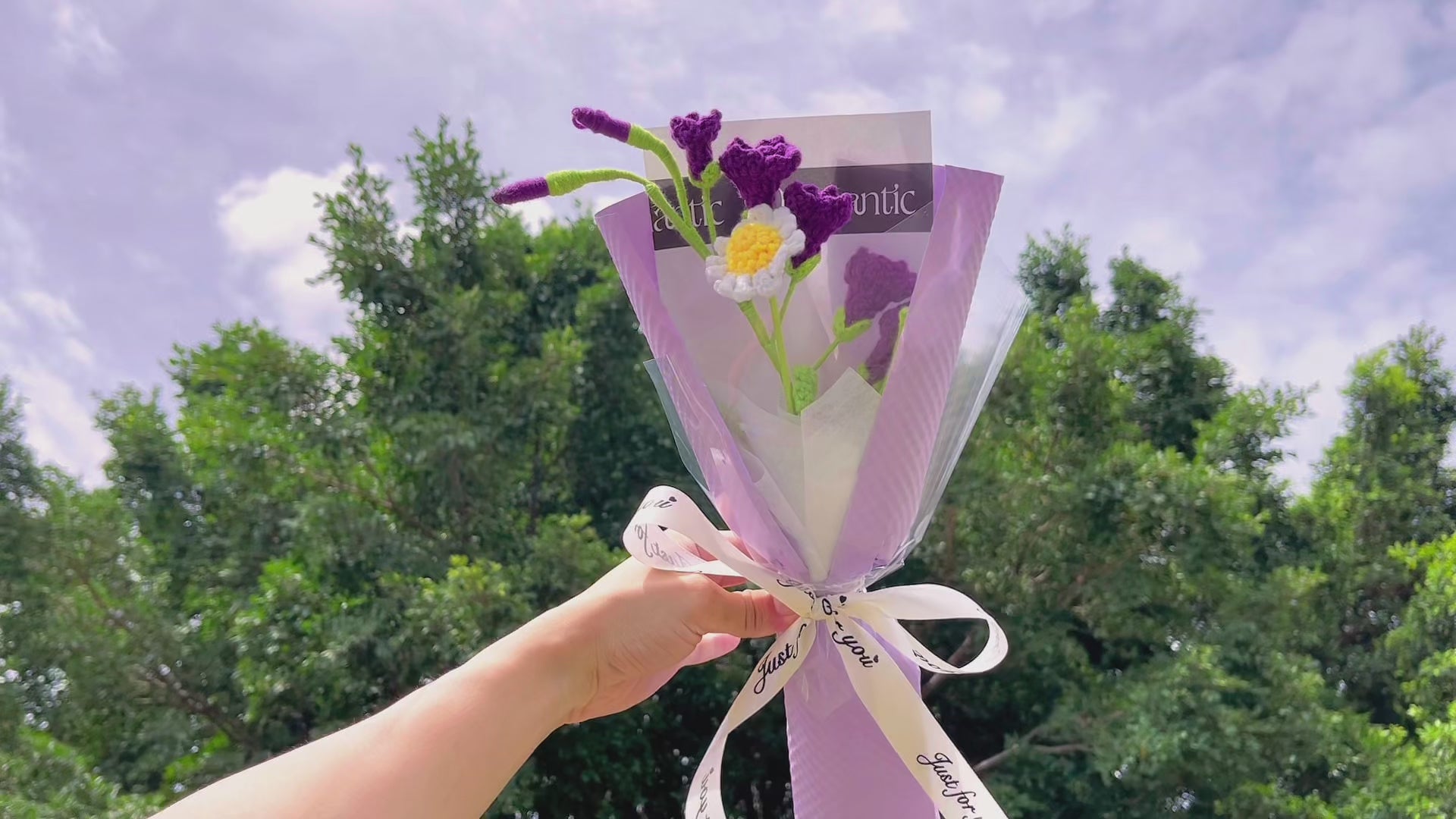 魔法花園手鉤花束 - 手工矢車菊與白雛菊組合,低過敏初見禮,婚禮/週年紀念/特別節日專屬